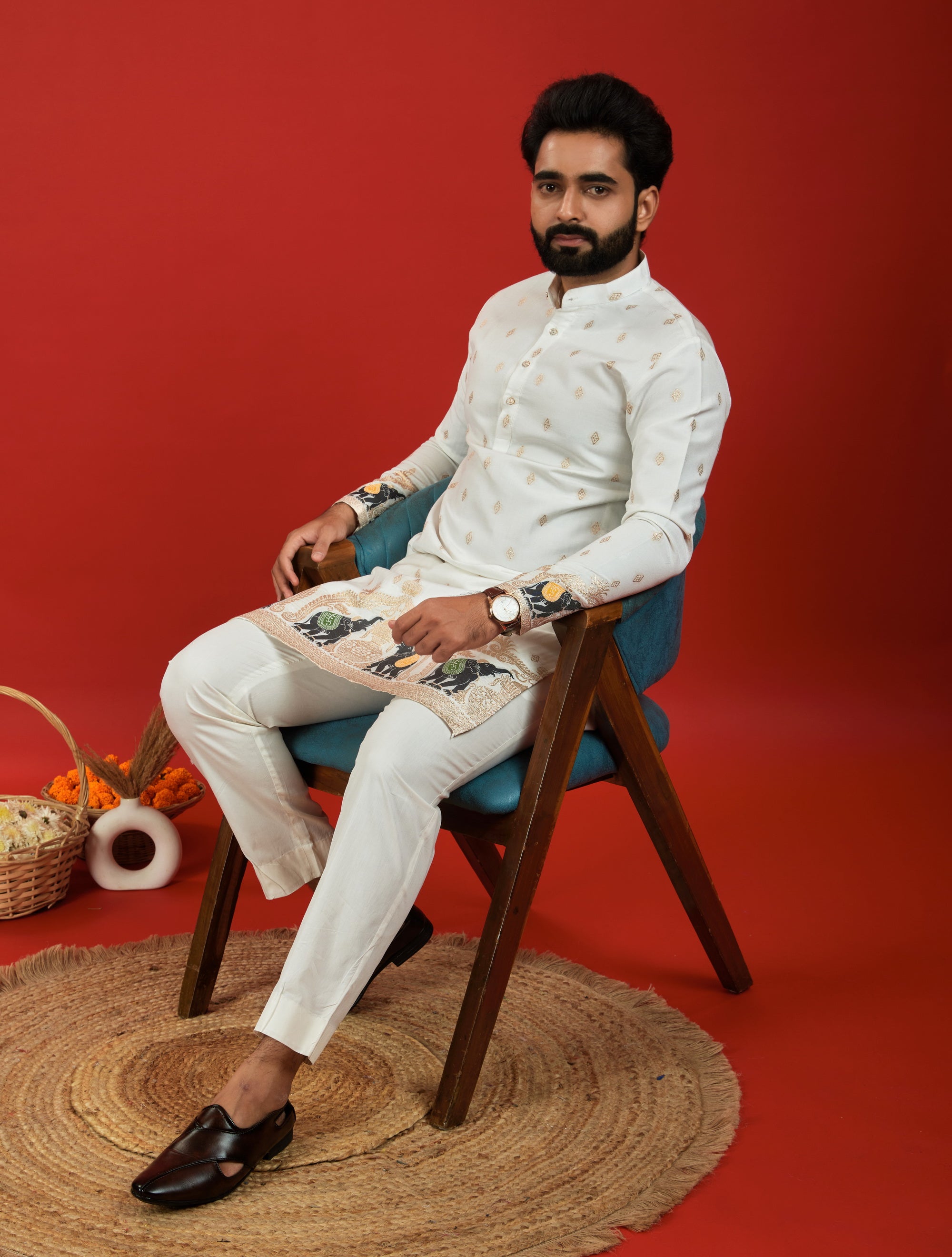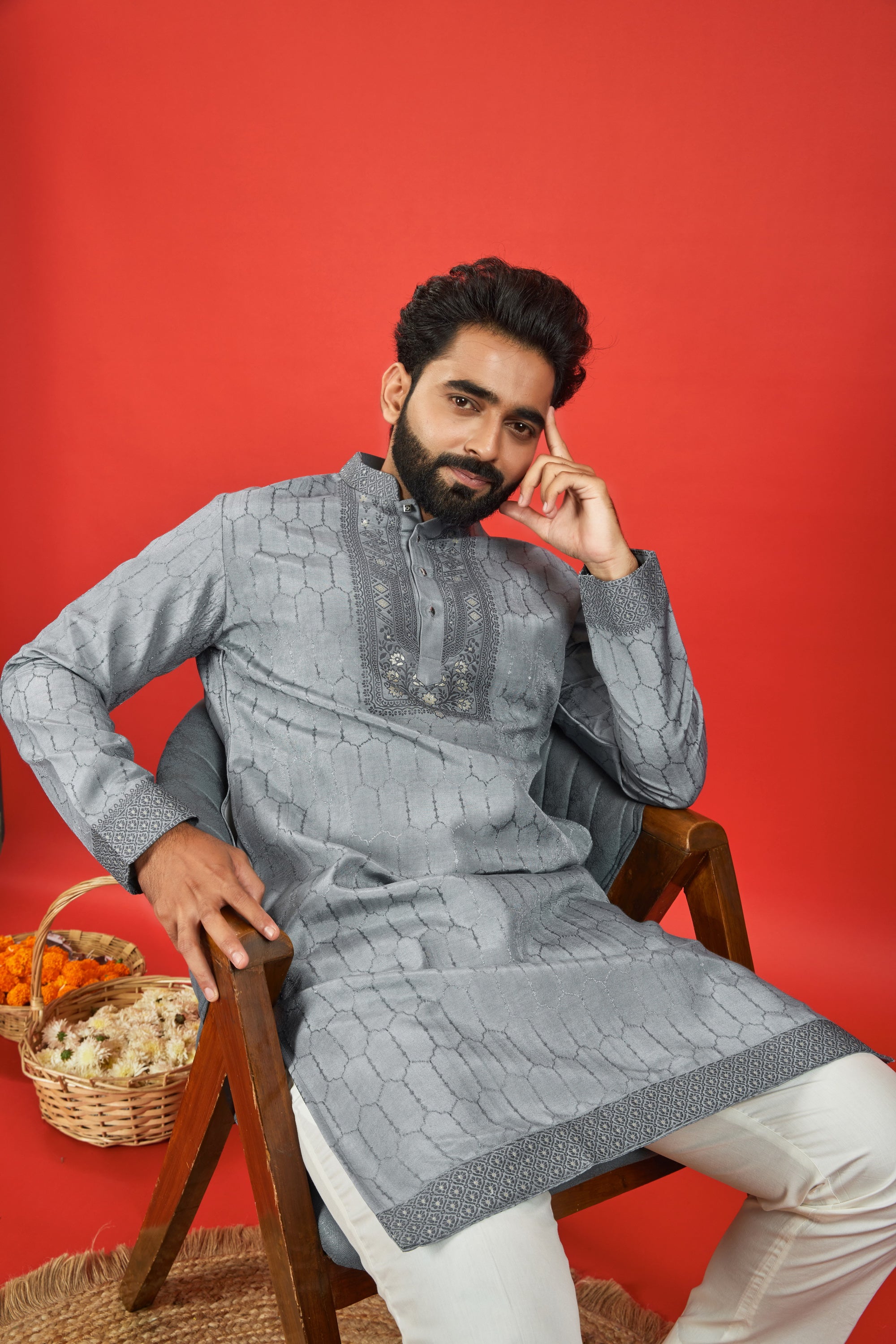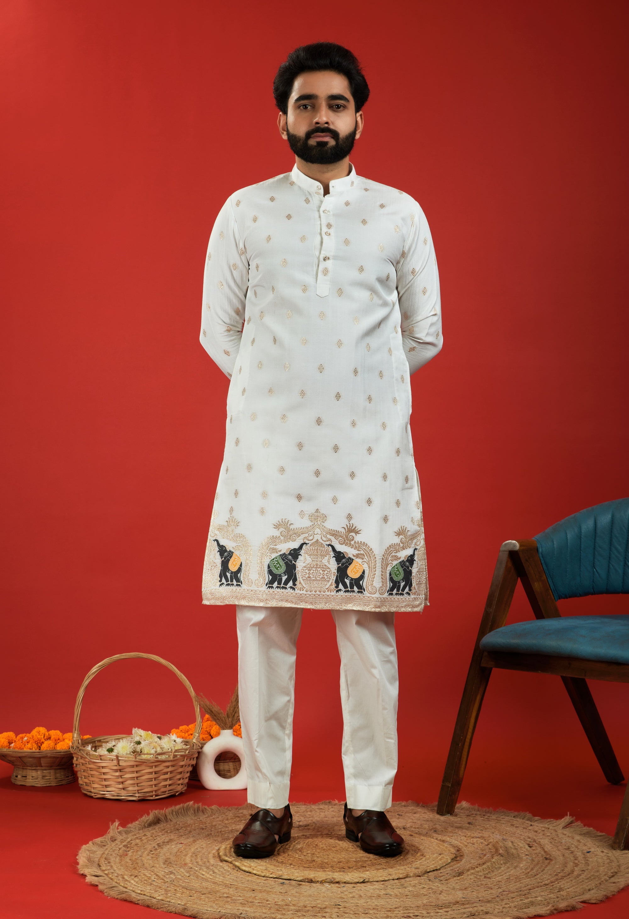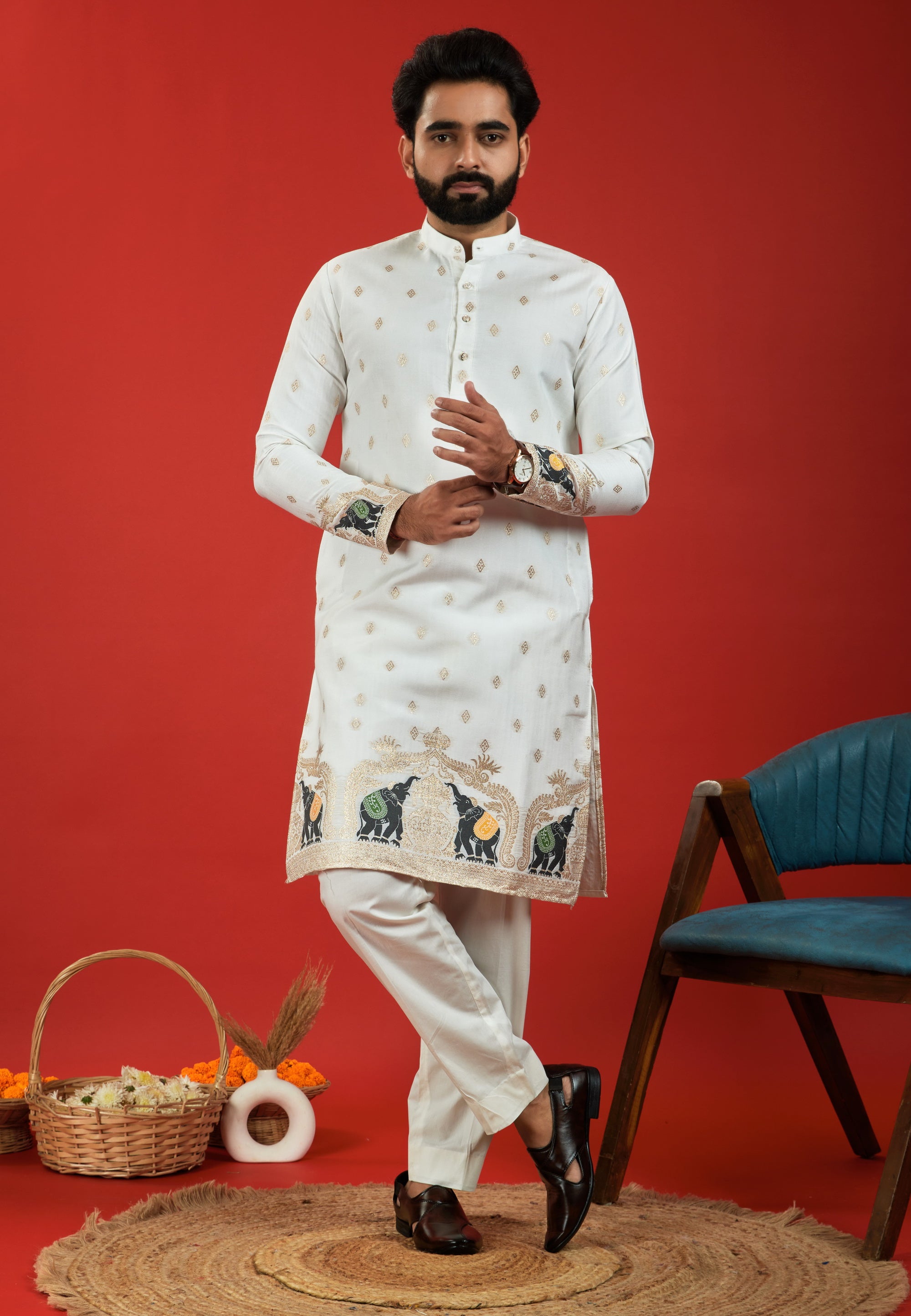 Elevate your ethnic style with Jacquard Designer Kurtas – rich textures, regal patterns, and unmatched craftsmanship.