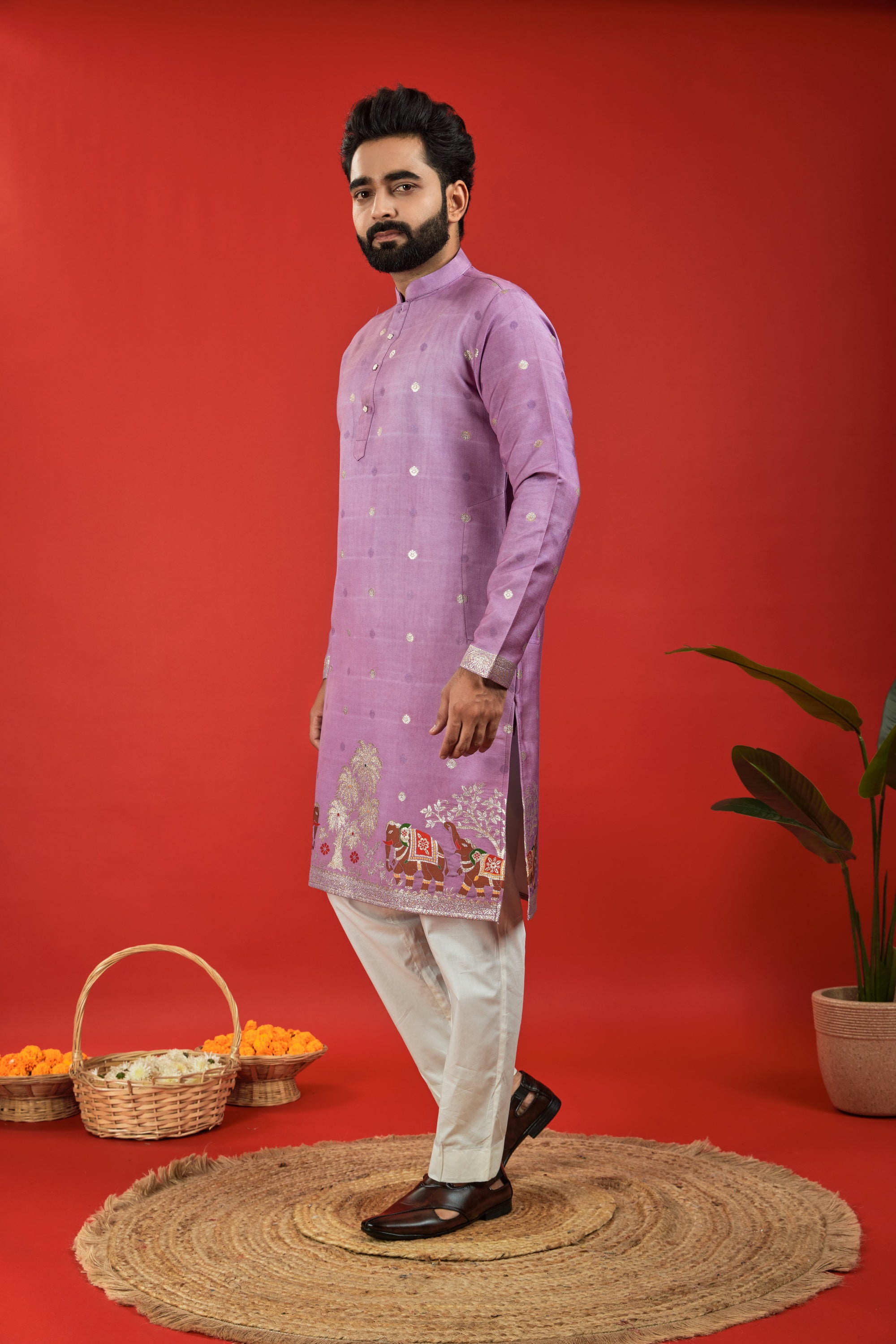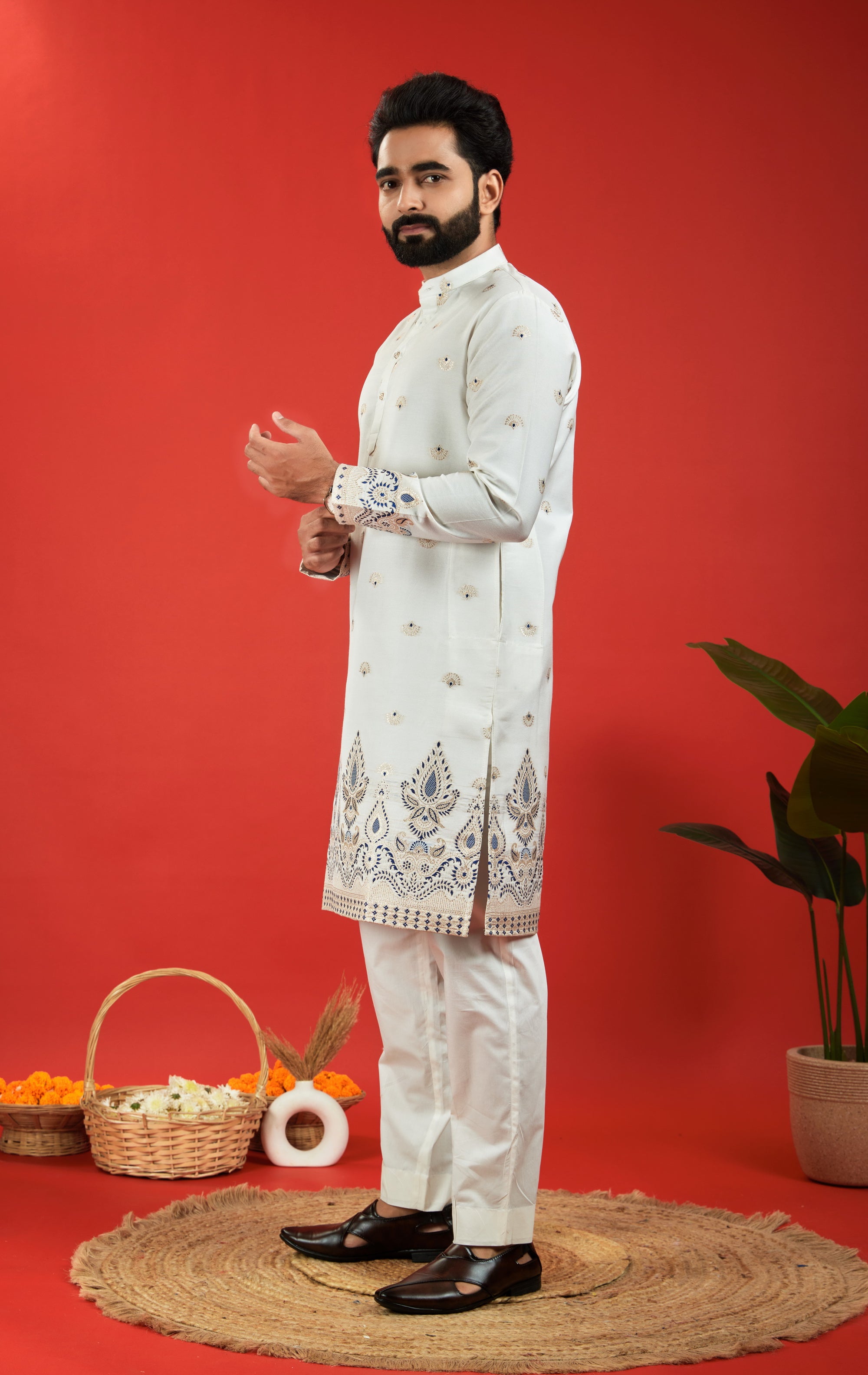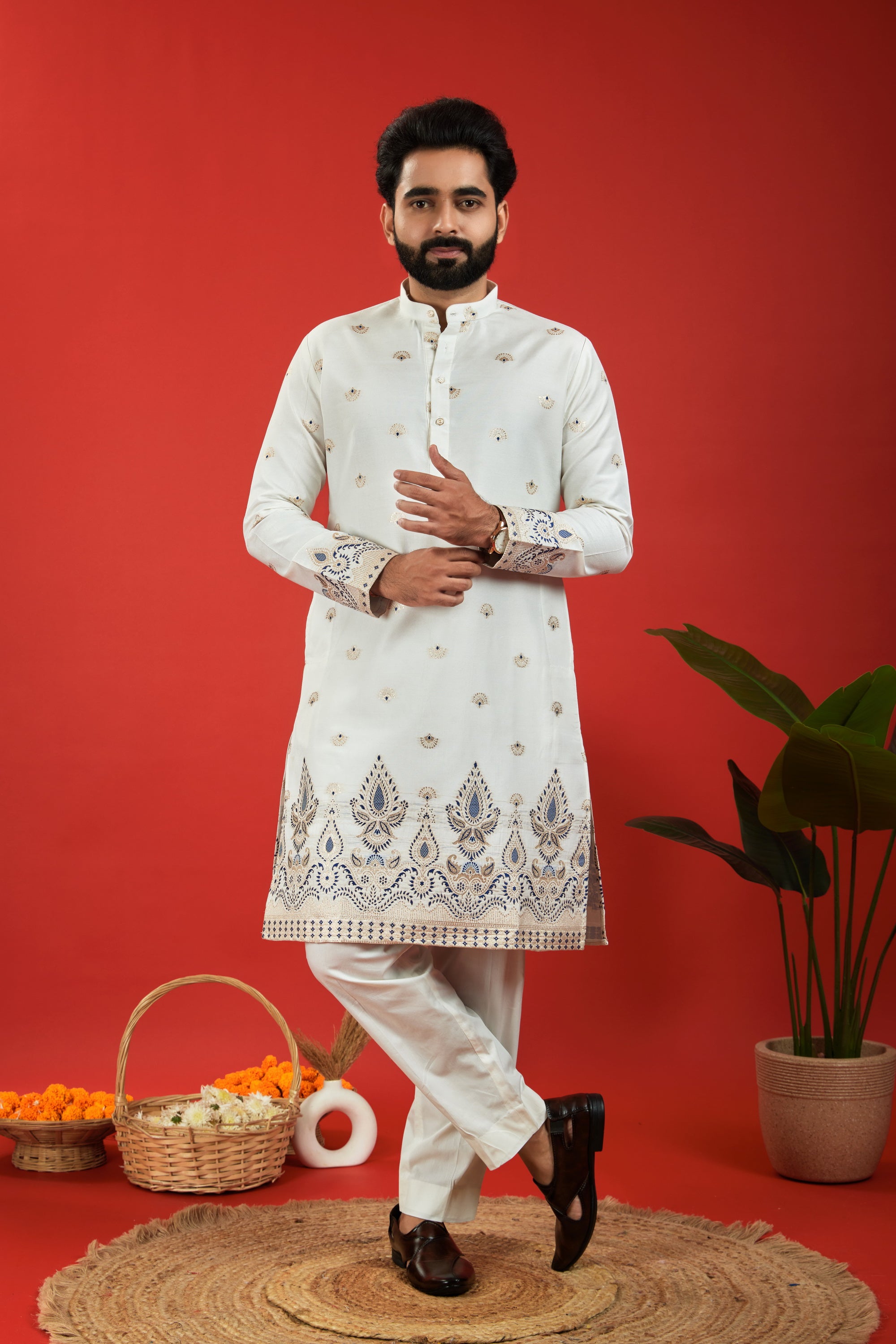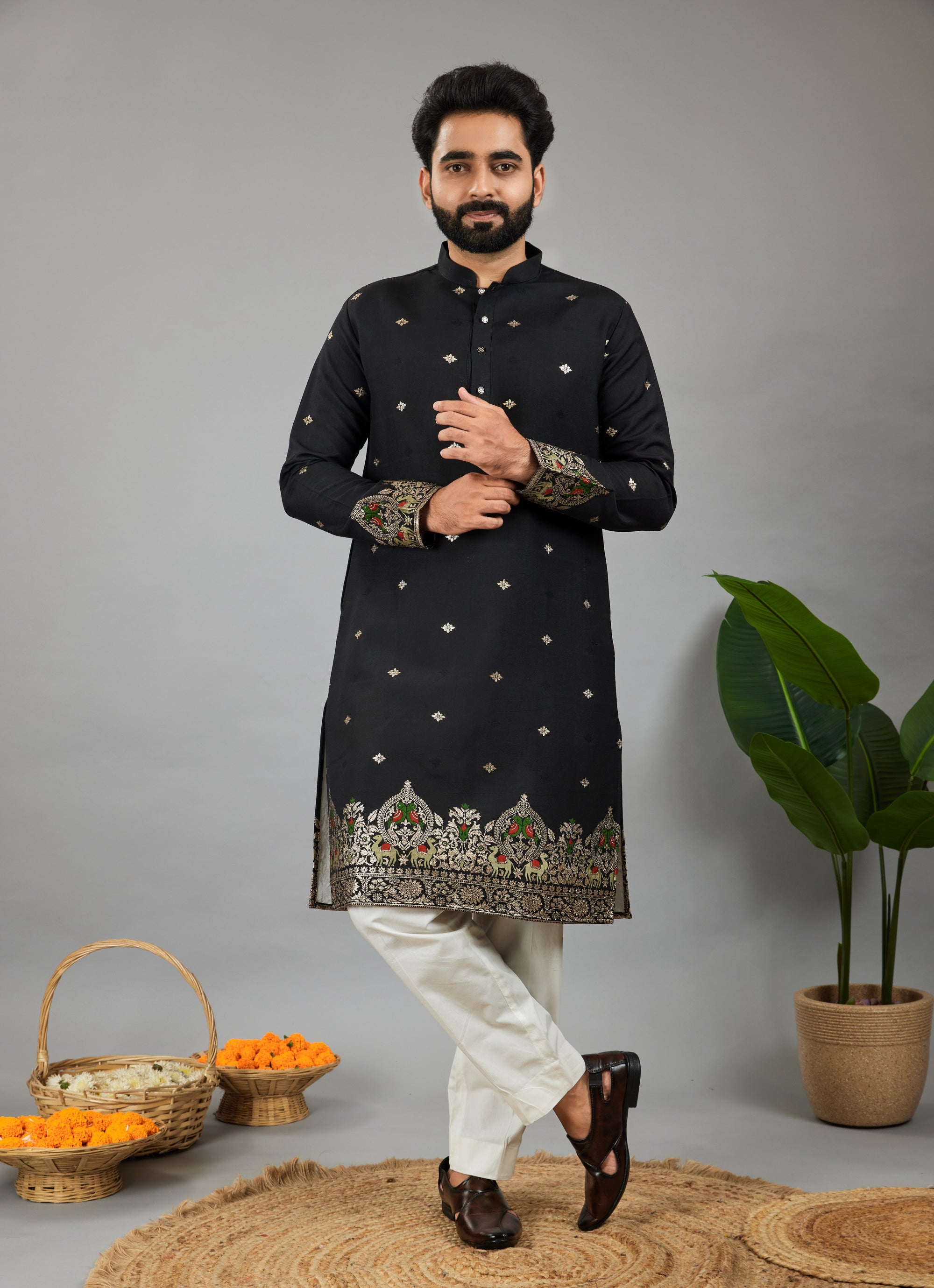 Elevate your ethnic style with Jacquard Designer Kurtas – rich textures, regal patterns, and unmatched craftsmanship.