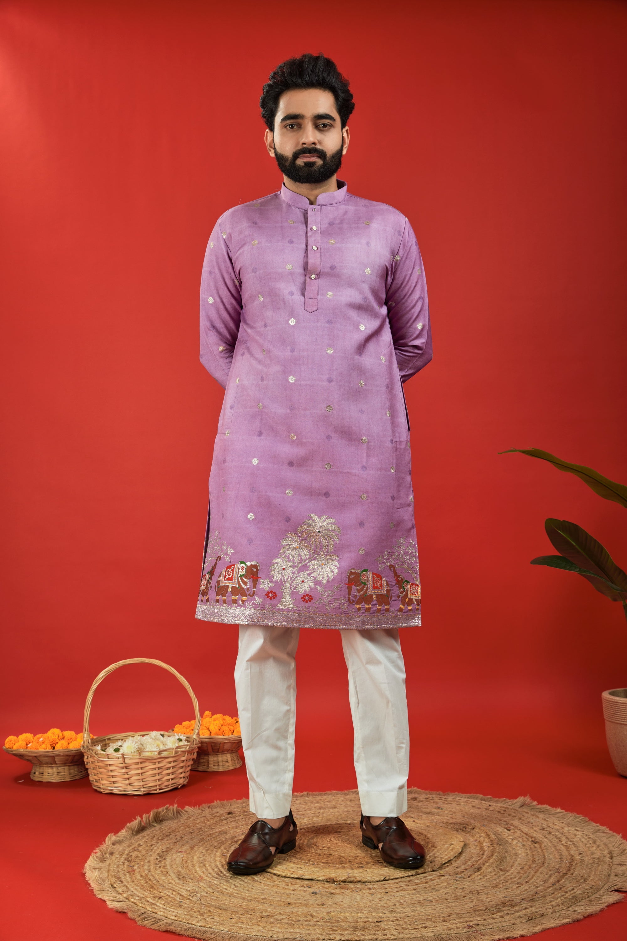 PURPLE BROWN ELEPHANT PATTERN JACQUARD DESIGNER KURTA