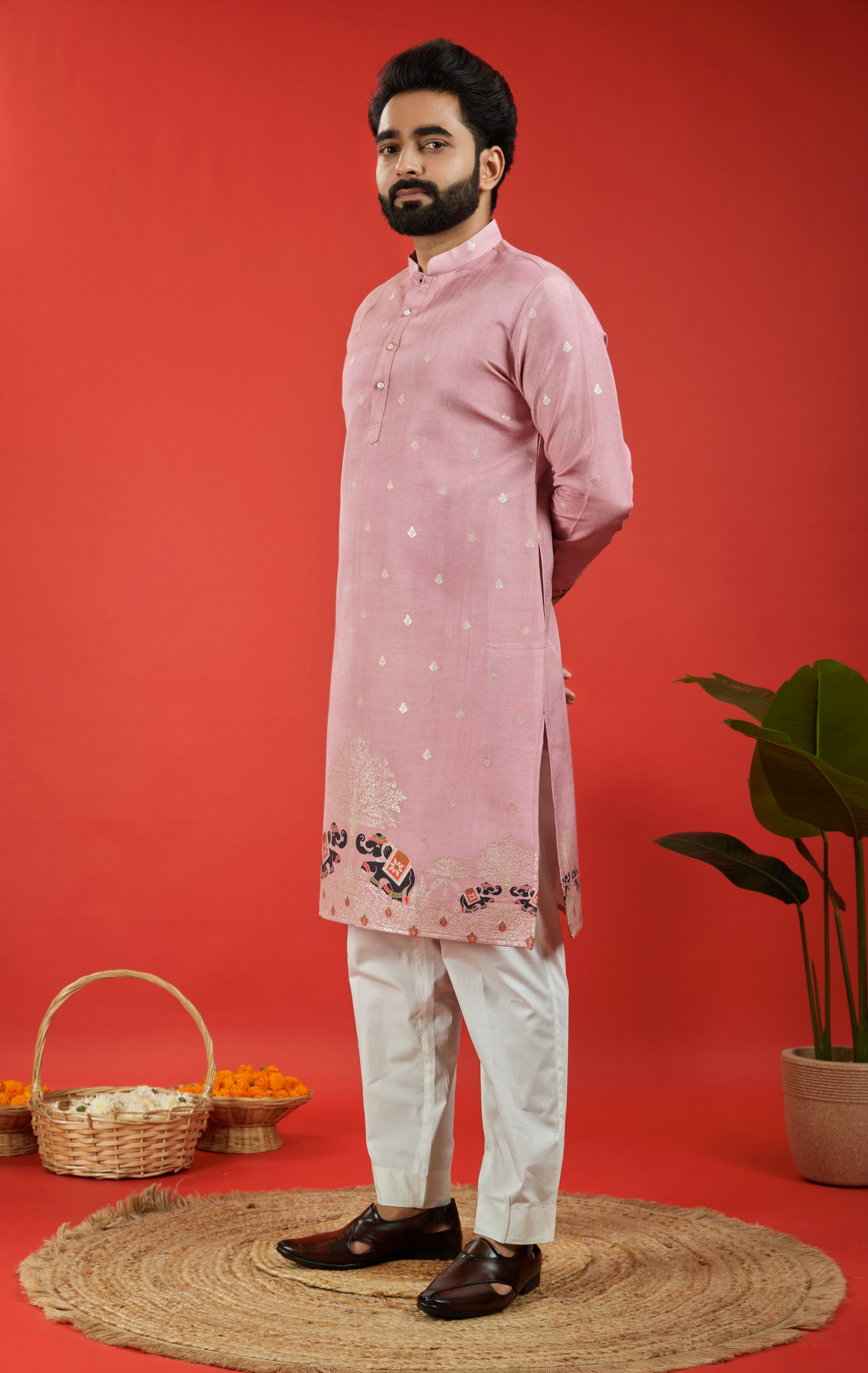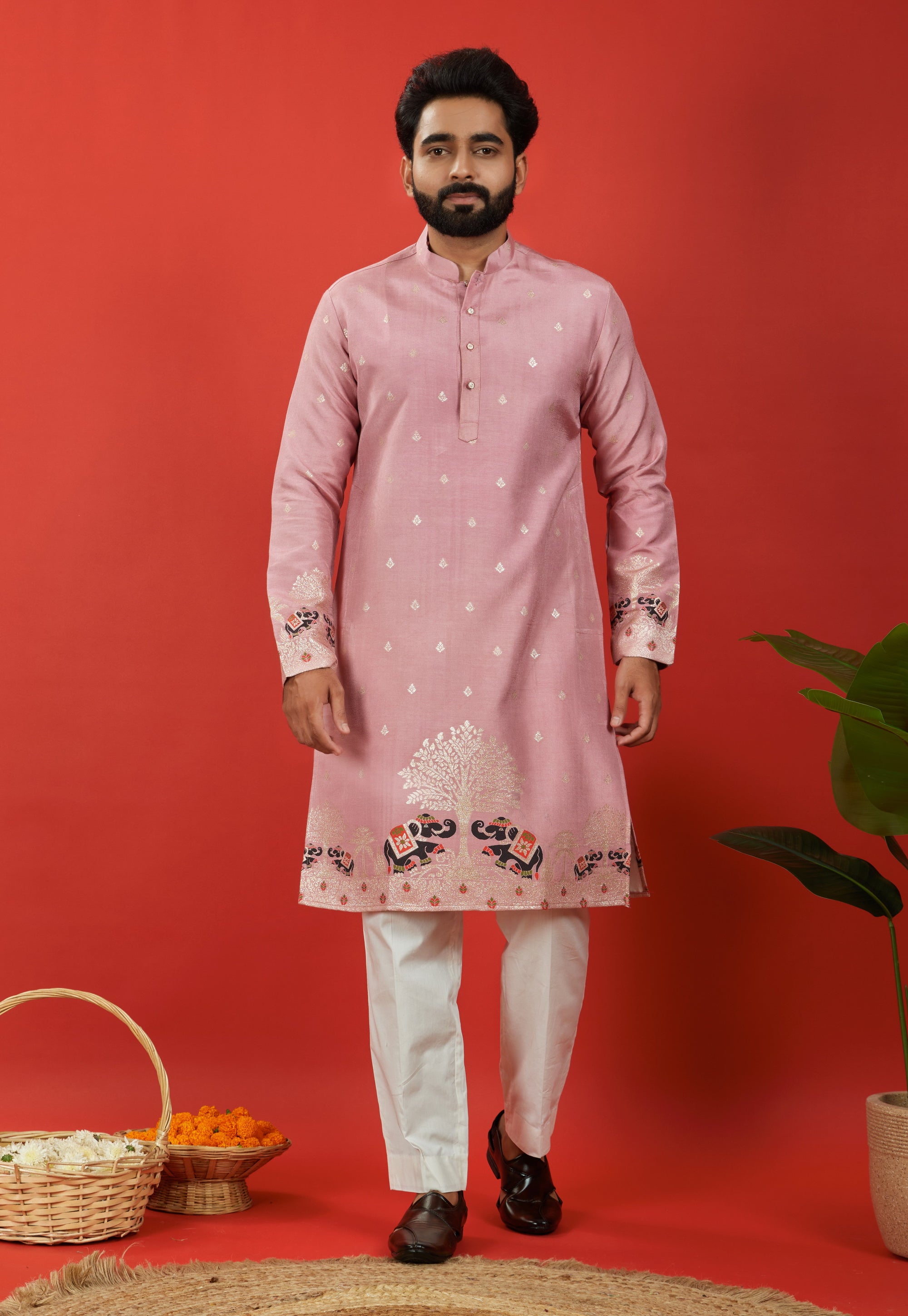 ONION PINK ELEPHANT PATTERN JACQUARD DESIGNER KURTA