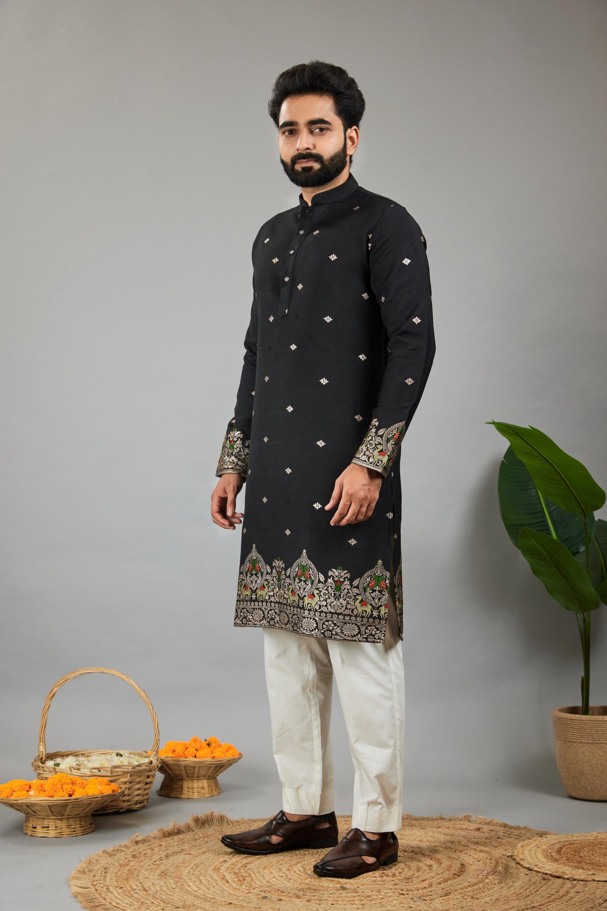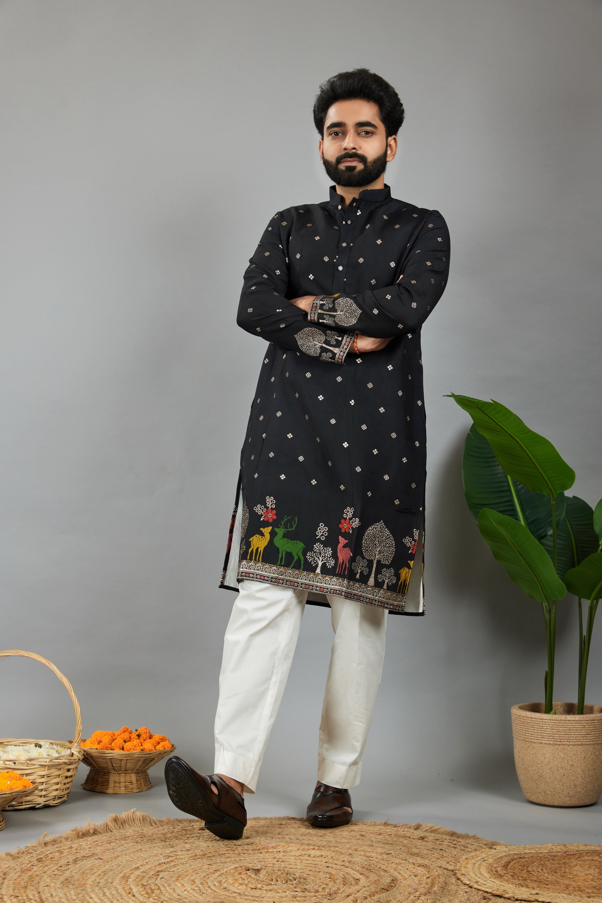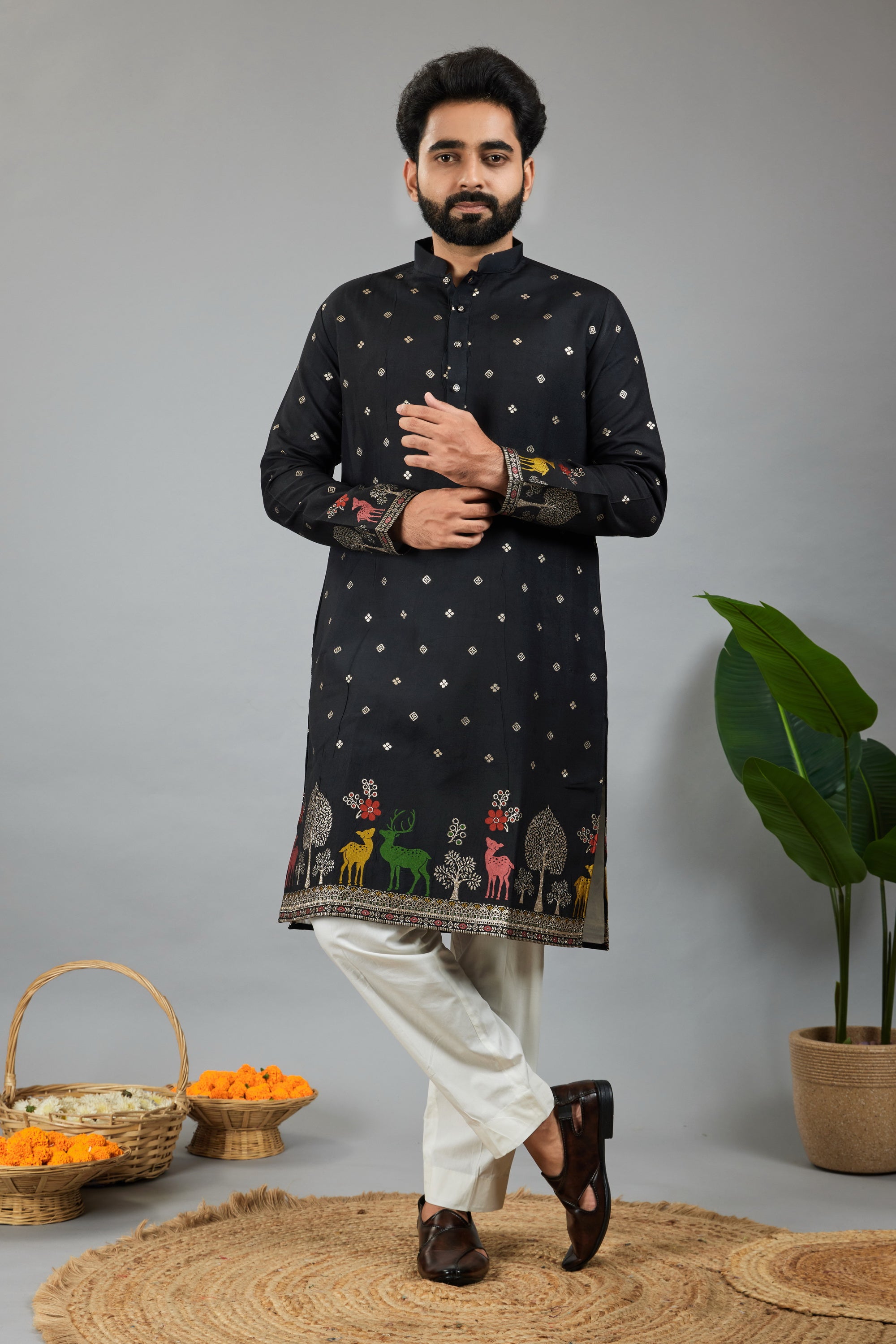 BLACK DEER PATTERN JACQUARD DESIGNER KURTA
