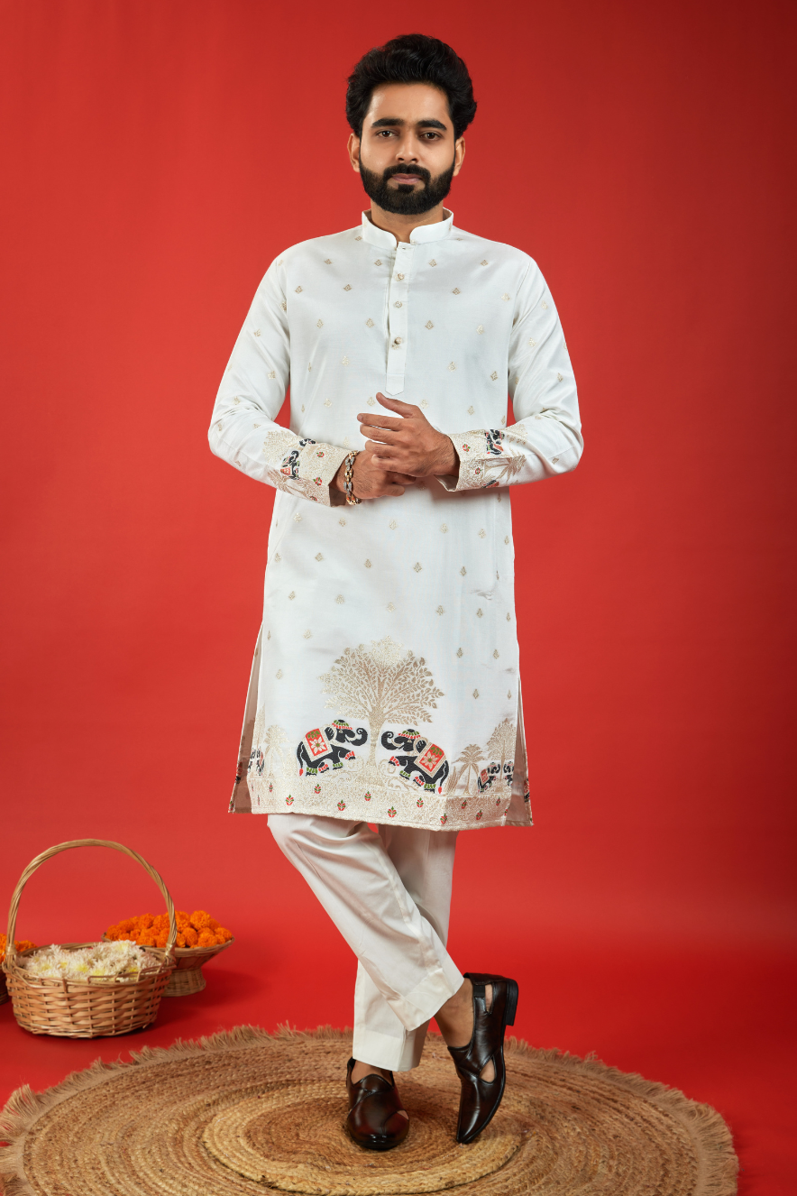 ELEPHANT WITH KALAS PATTERN JACQUARD DESIGNER KURTA