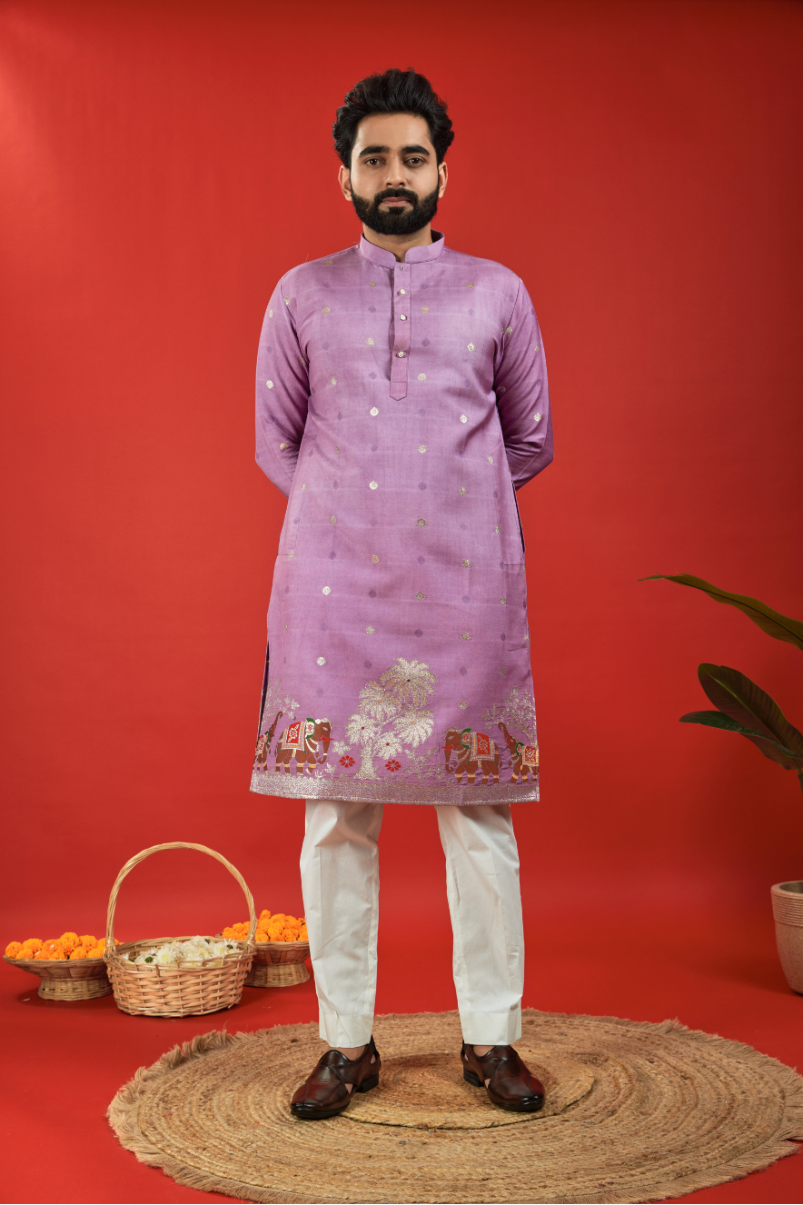 PURPLE BROWN ELEPHANT PATTERN JACQUARD DESIGNER KURTA