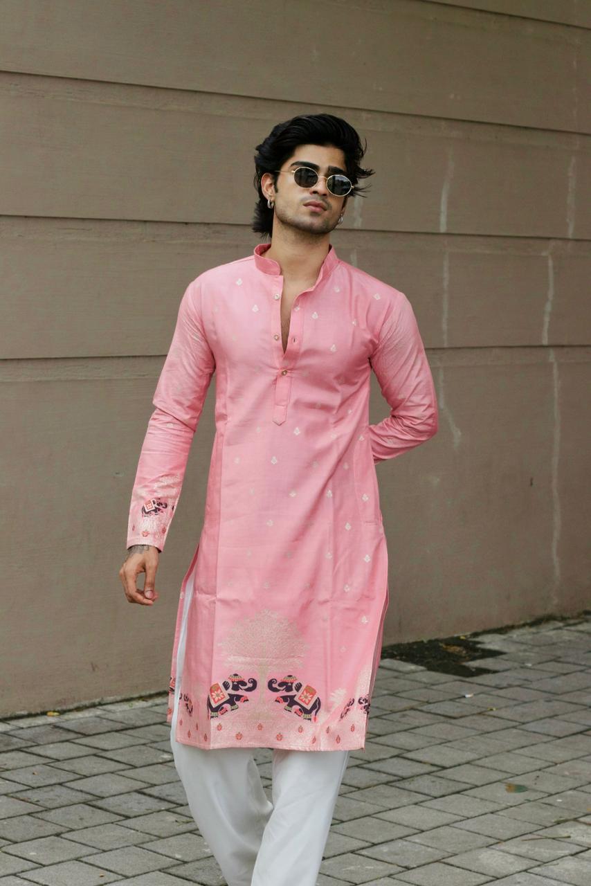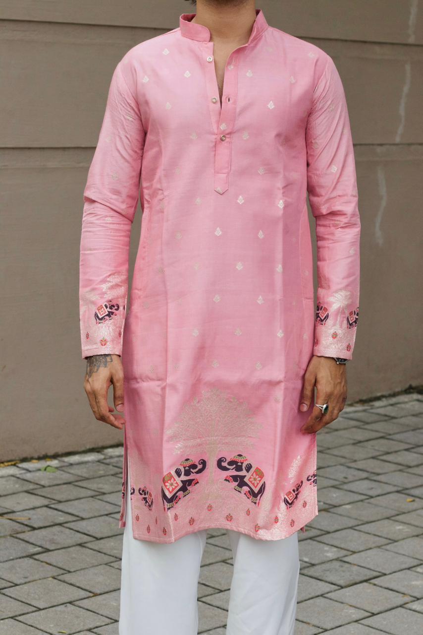 ONION PINK ELEPHANT PATTERN JACQUARD DESIGNER KURTA